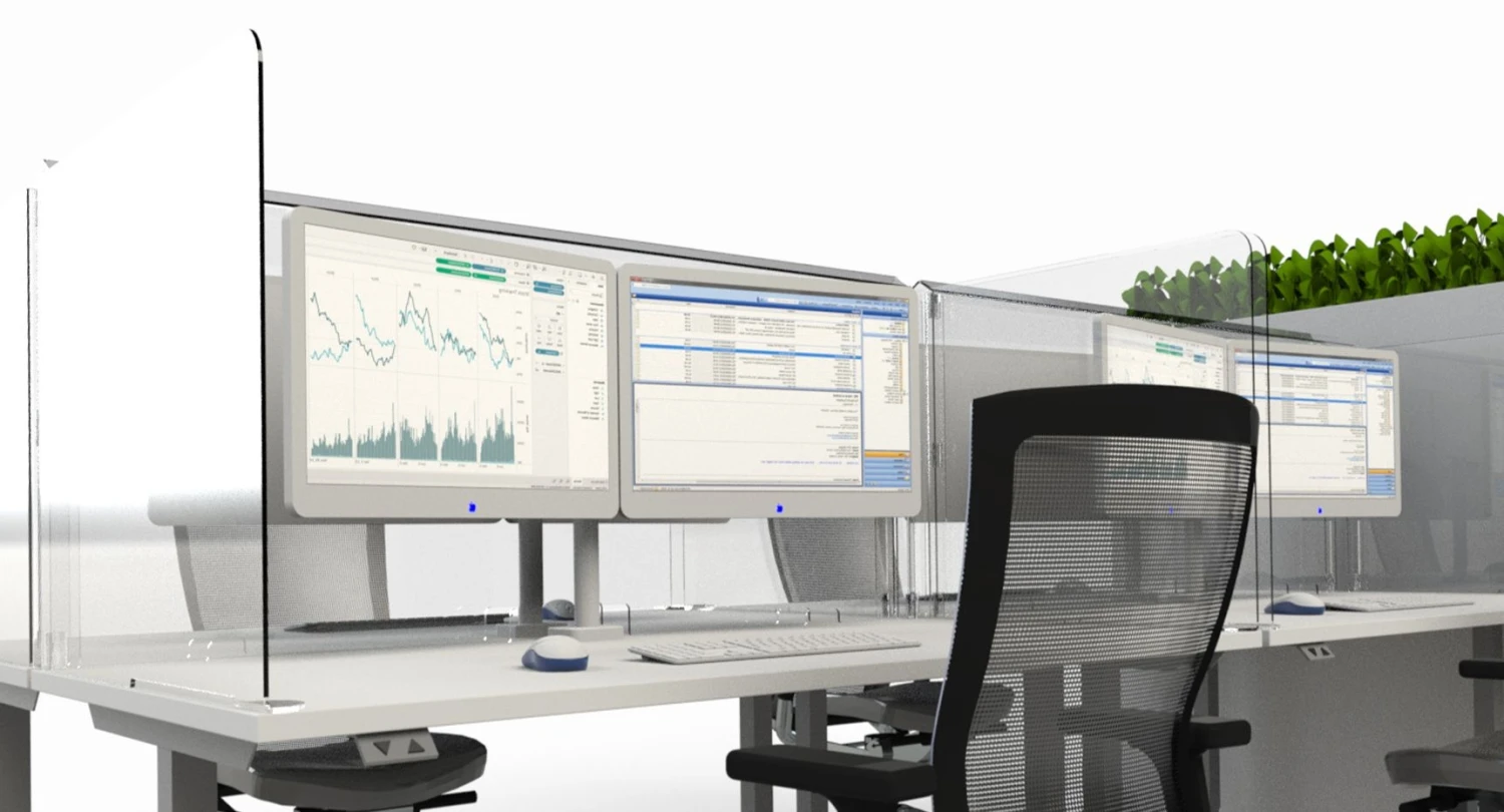 - Keep staff safe and healthy preventing the direct transmission of air particles between users with clear acrylic desk screens.