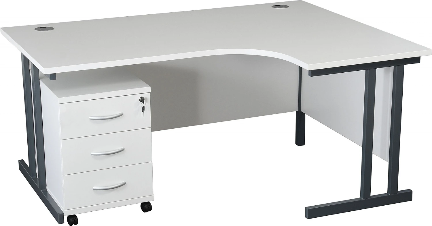 - Deluxe double upright cantilever design ergonomic office desks with a handy under desk pedestal.